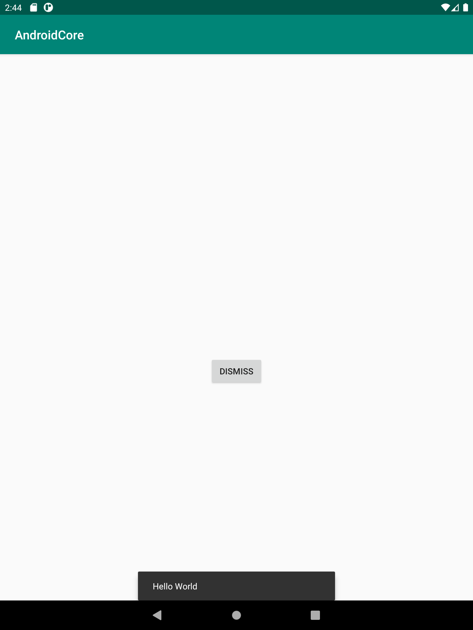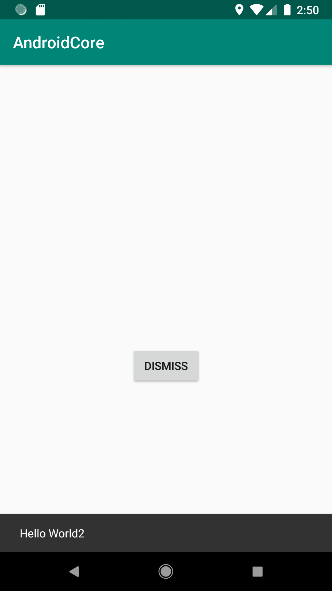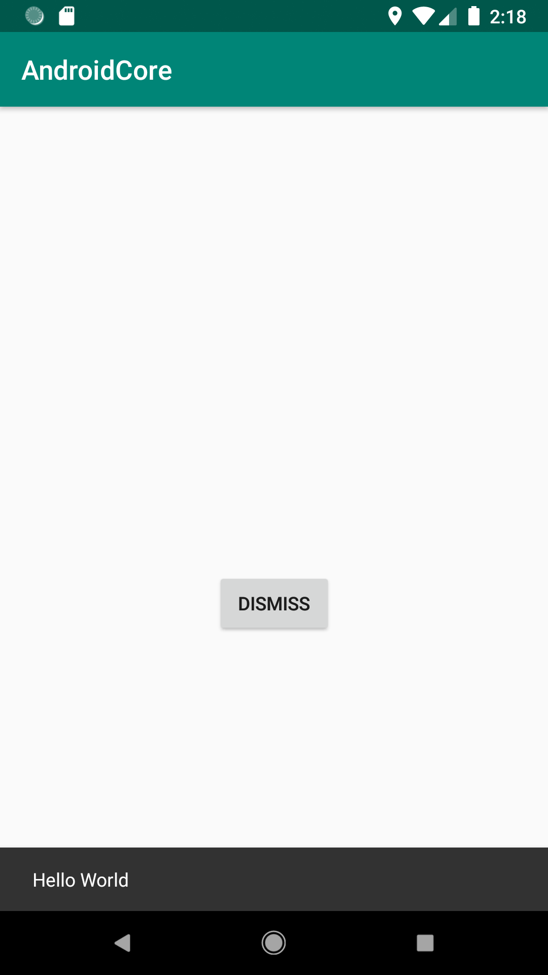 Hello World 라고 Snackbar(회색 배경의 바)가 화면 아래에 표시됩니다.