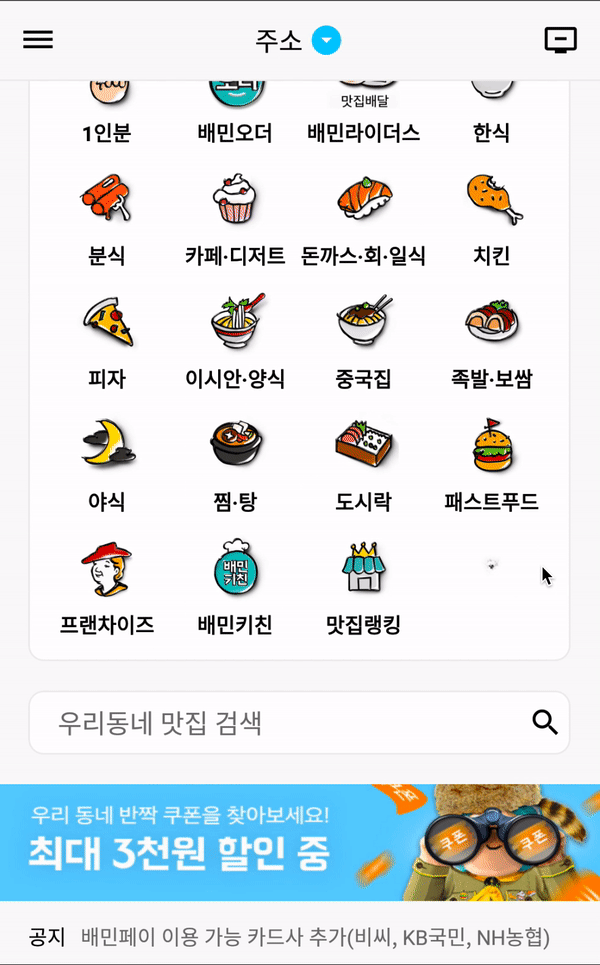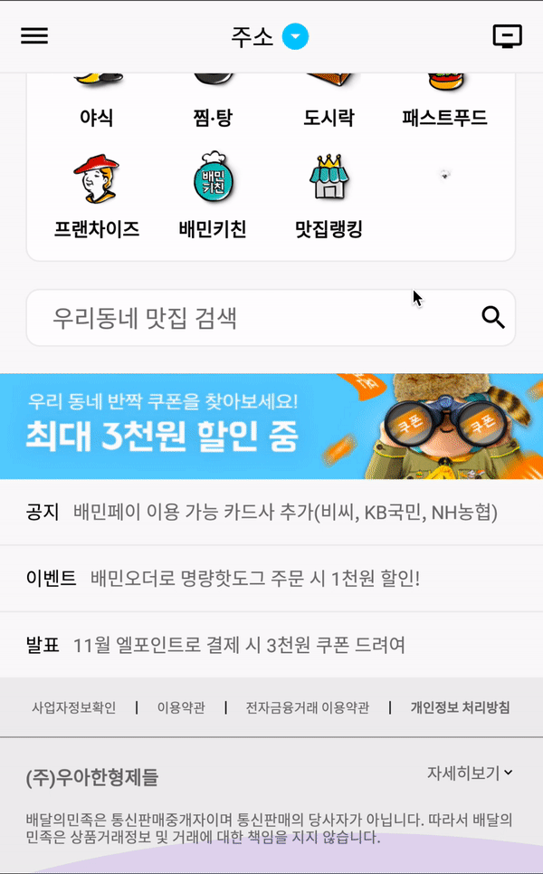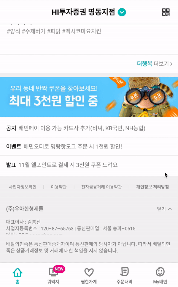 제가 알고보니 업데이트하지 않은 배달의 민족 App을 쓰고 있었다가 업데이트를 하니 UI가 많이 바꼈었습니다. 그래서 약간의 차이가 있는 점 양해 부탁드립니다. ㅜㅜ