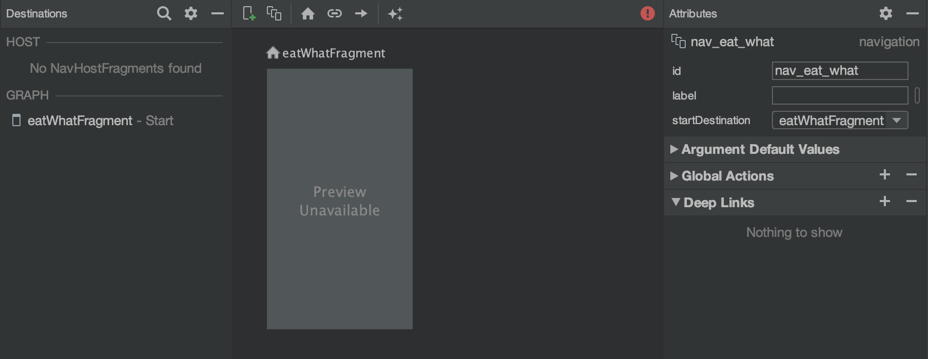 (예 nav_eat_what.xml에 eatWhatFragment를 추가한 그림)