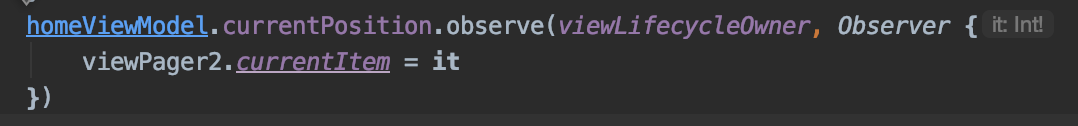 그럼 currentPosition이 3초마다 바뀌게 될 것이며 이를 아래와 같이 observe 하고 있다가 viewPager2의 현재 Item을 currentPosition으로 세팅합니다.