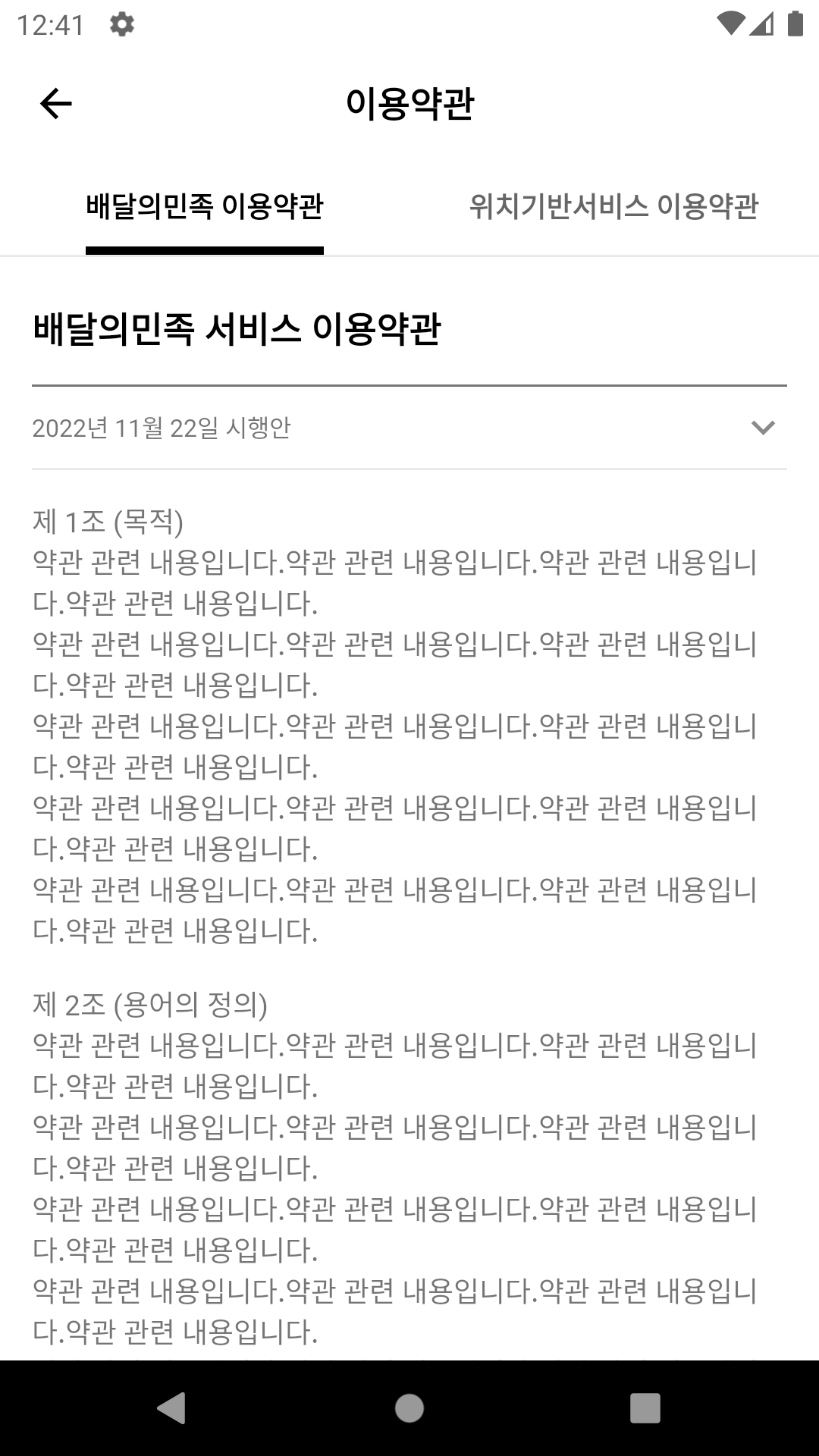 1. 이용약관 화면
